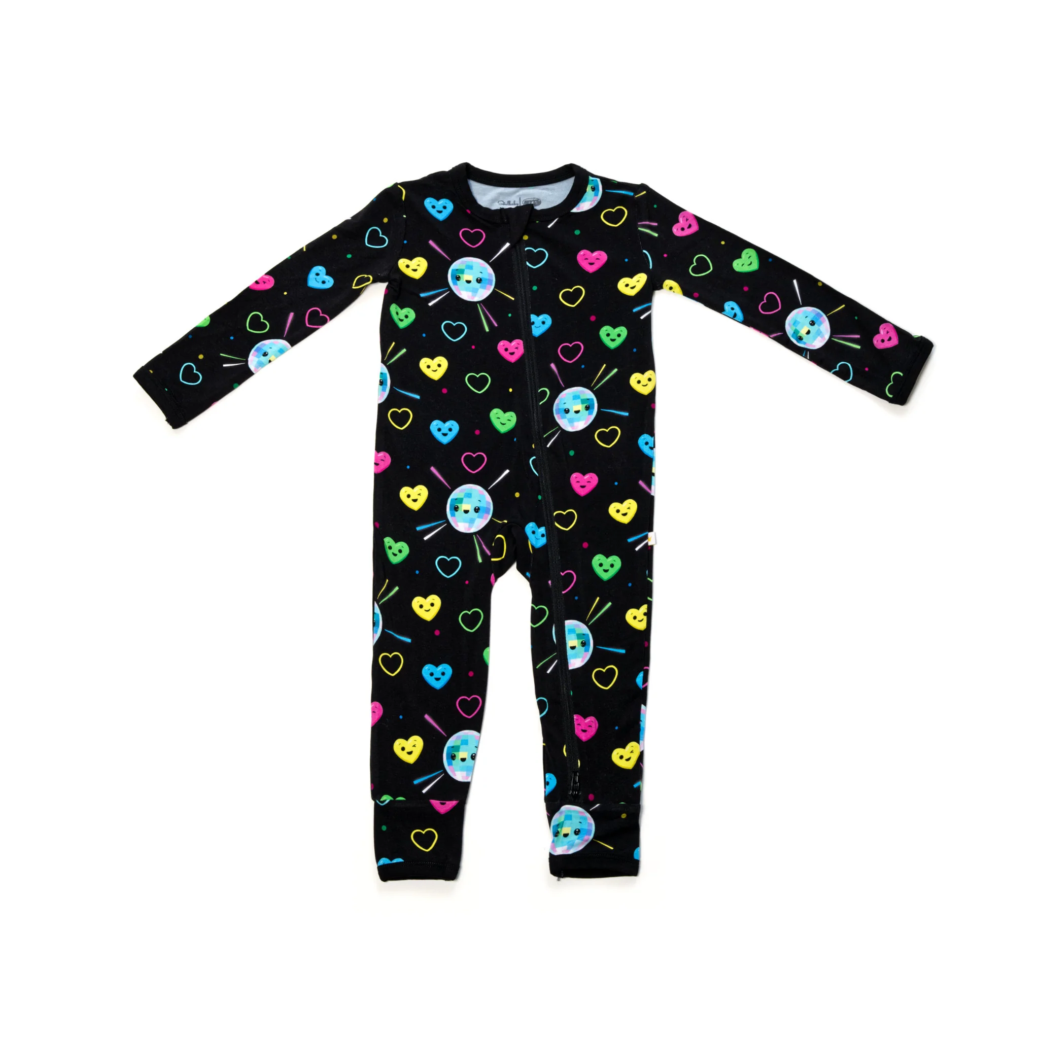 Get ready to groove with our Disco Hearts Zippy! Made from ultra-soft, breathable bamboo fabric, this one-piece features vibrant heart patterns that bring playful energy to every day. Designed with a double zipper for easy changes and a snug, comfy fit, it’s perfect for little movers and shakers!